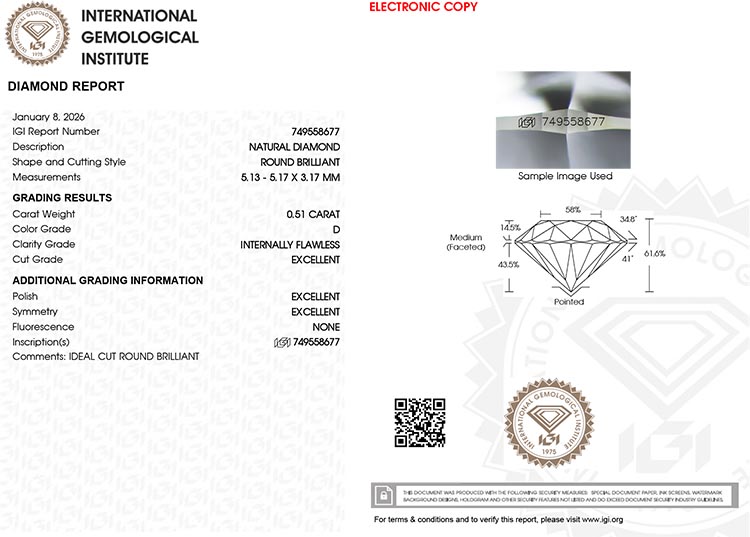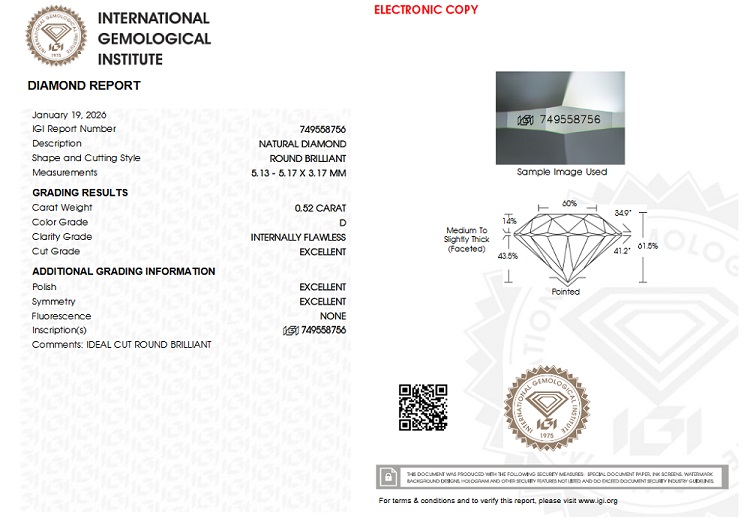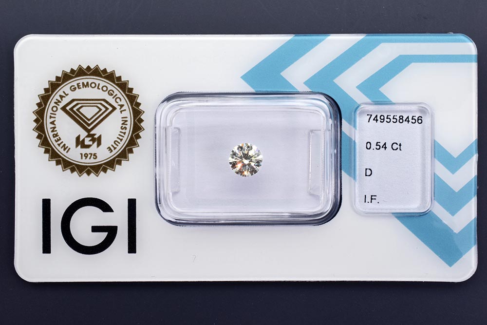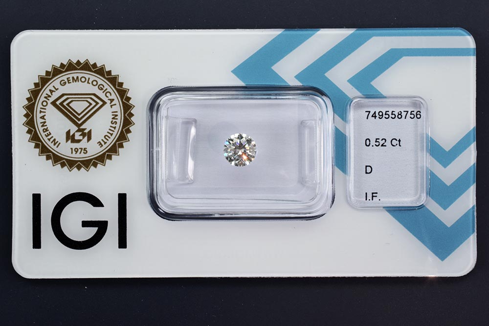 Selbstverständlich in der ungeöffneten Original IGI-Versiegelung und mit Lasergravur seiner Zertifikatnummer.